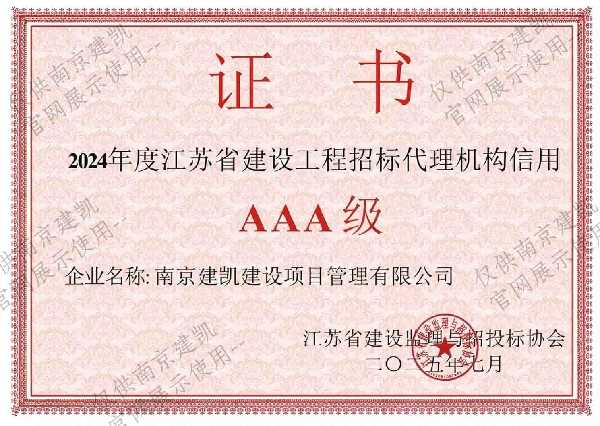 2024年度江苏省建设工程招标代理机构信用AAA级